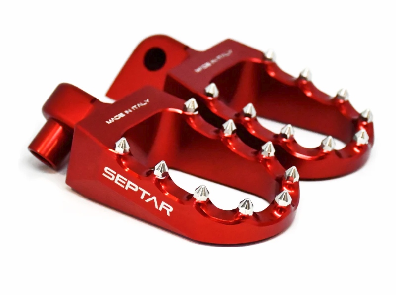 Omschrijving Fraaie brede voetsteunen, gemaakt van aluminium, geanodiseerd in kleur, met rvs pinnen voor optimale grip.